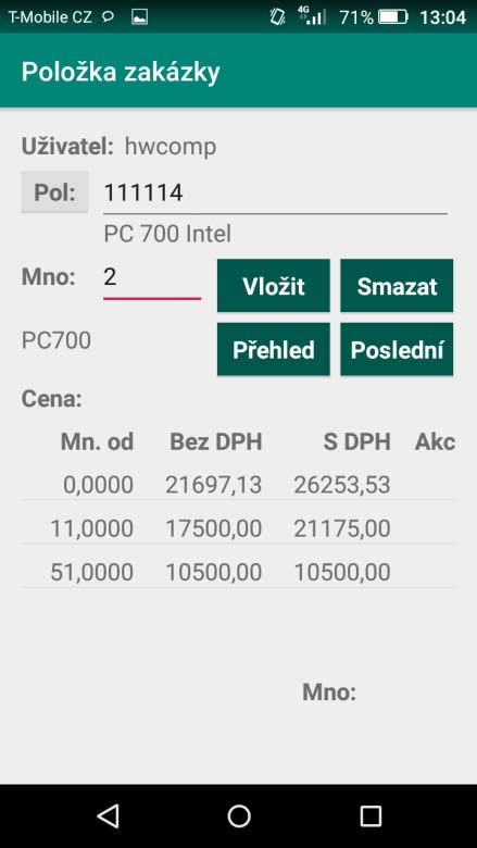 Tvorbu dokladů: zakázka, objednávka, příjemka, výdejka