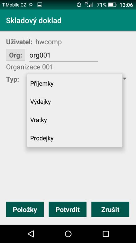 - Skenujte položky, zadejte množství, případně výrobní číslo