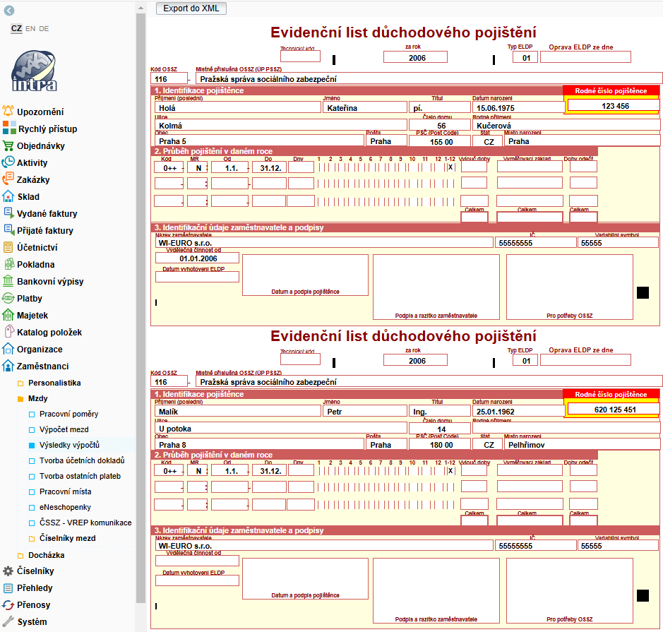 - Otevřete seznam: Zaměstnanci → Mzdy → Výsledky výpočtu → Evidenční list důchodového pojištění