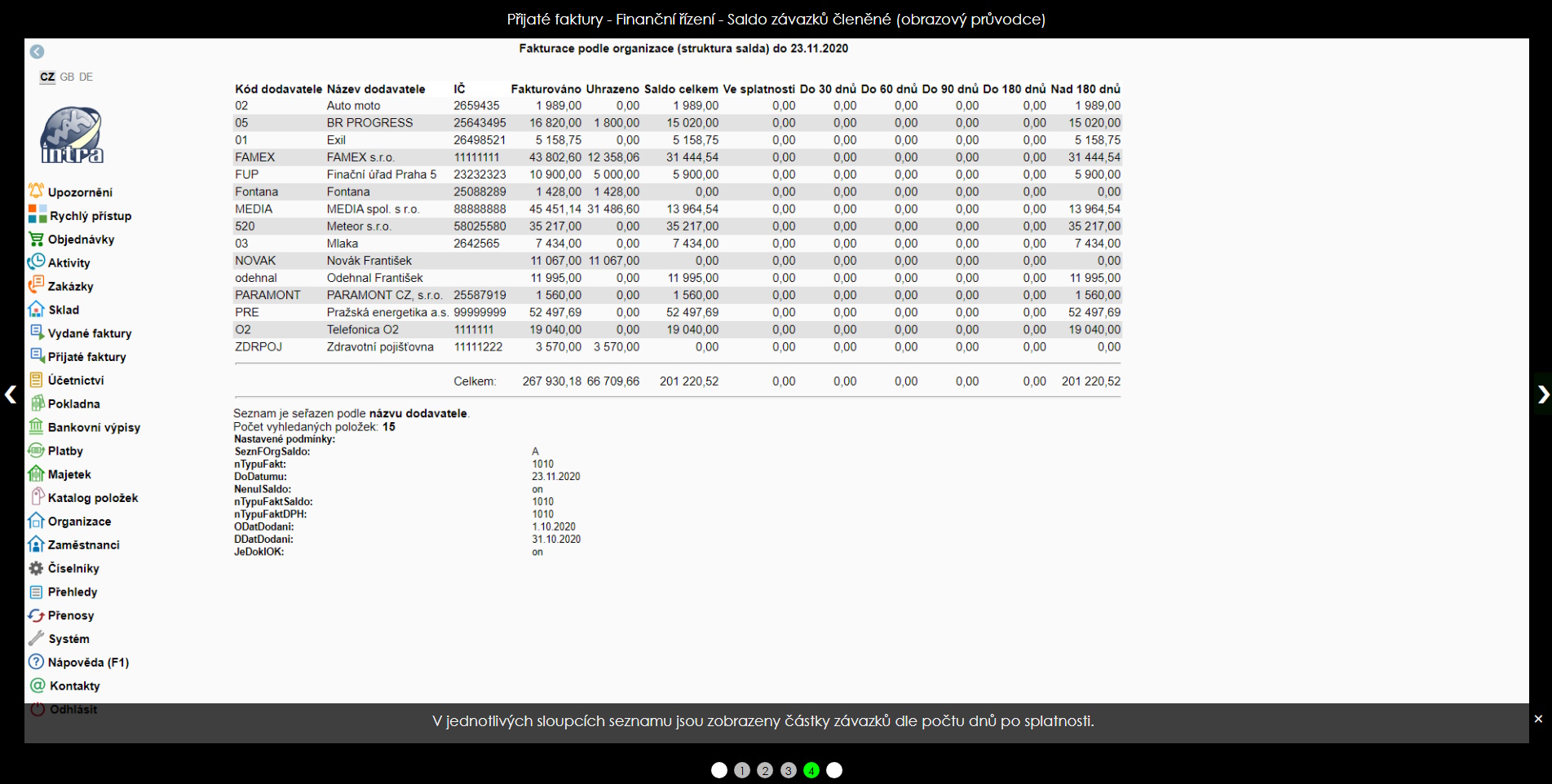 Ukázka z obrazového průvodce - Saldo závazků členěné aneb Přehled přijatých faktur podle splatnosti