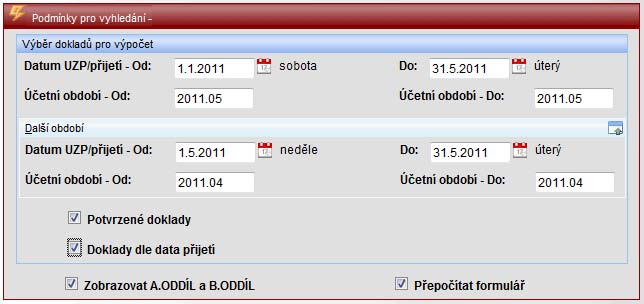 - Pokud je zaškrtnuto: doklady vystavené před 1. 4. 2011 se zahrnou podle data přijetí.