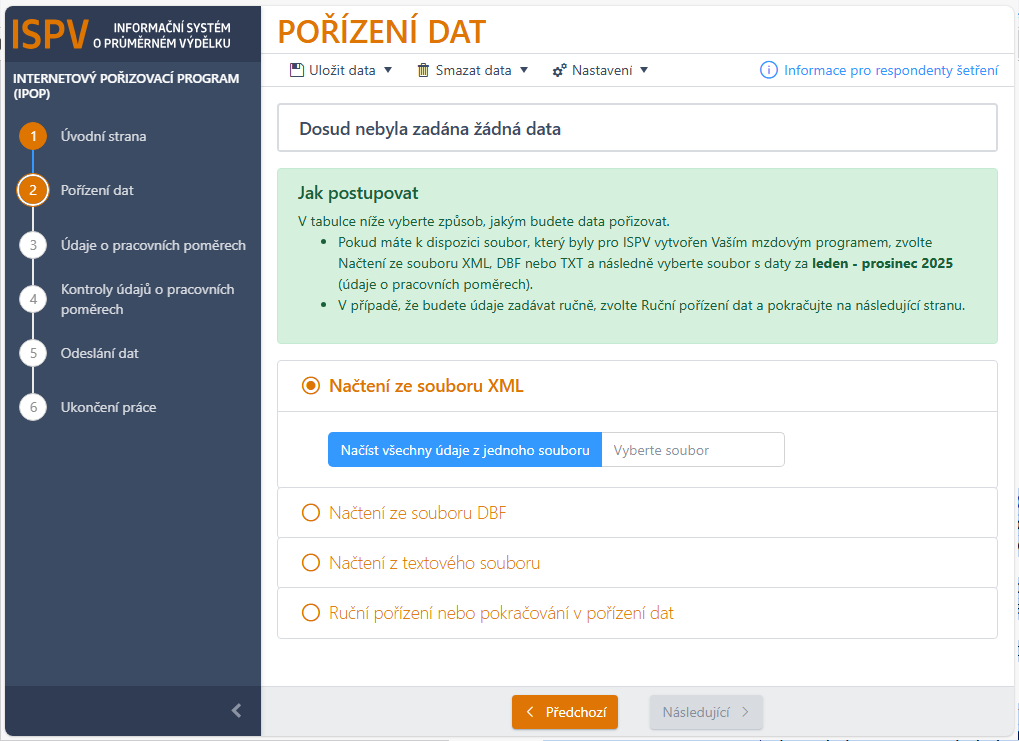 Systém WAK INTRA umožňuje vytvořit XML soubor s daty pro statistické šetření o průměrném výdělku (ISPV). Aby byl export dat správný a kompletní, je nutné projít několik kroků přípravy — od kontroly číselníků až po odeslání dat prostřednictvím Internetového kontrolního programu ISPV (IPOP).