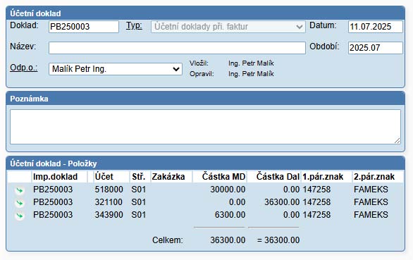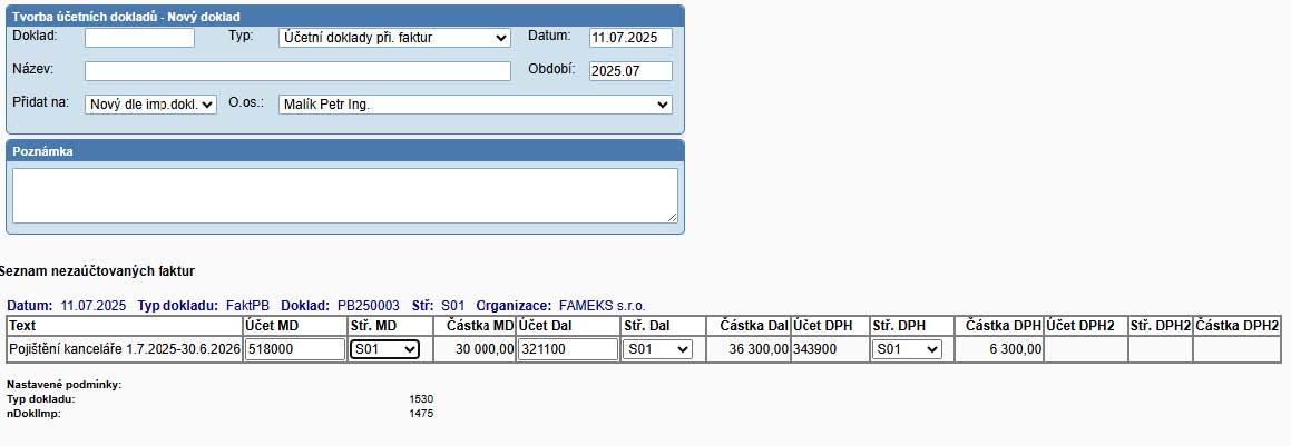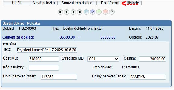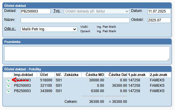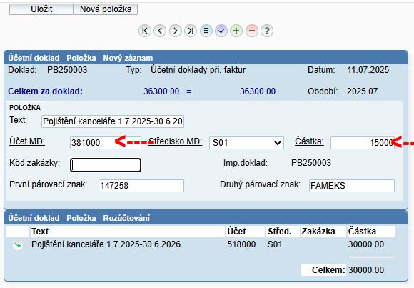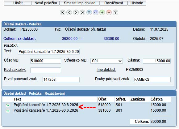 4) Po uložení bude účetní doklad obsahovat o položku více.