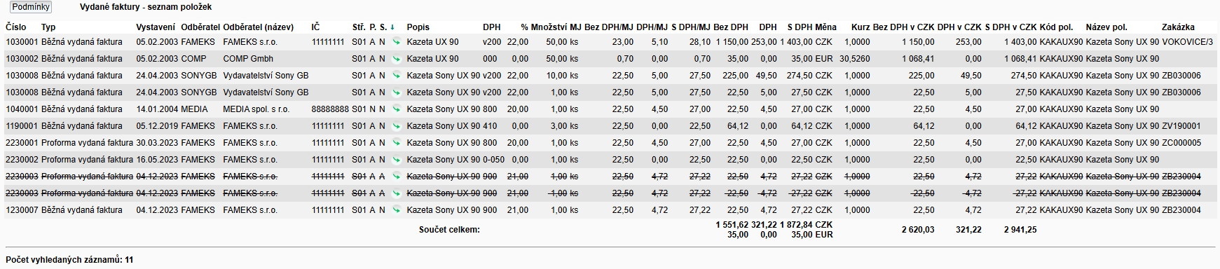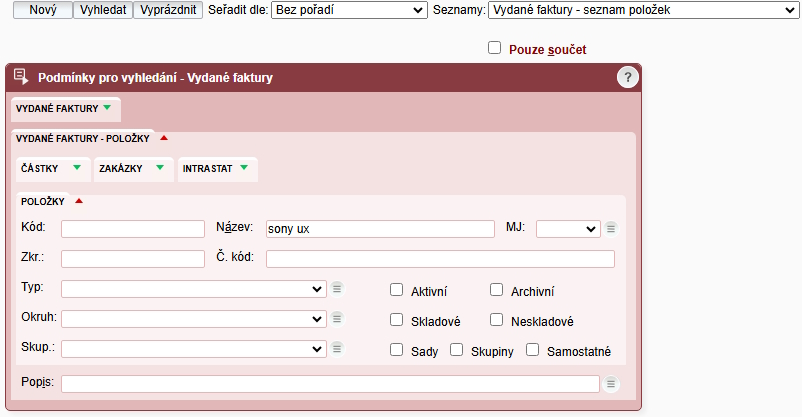 Přehled o fakturaci dané položky můžete získat následujícícm způsobem z menu systému: Vydané faktury -> formulář a vybrat seznam ->Vydané faktury – seznam položek.