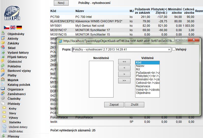 💾 Uložení uživatelských podmínek výběru do Přehledy / Uložené dotazy